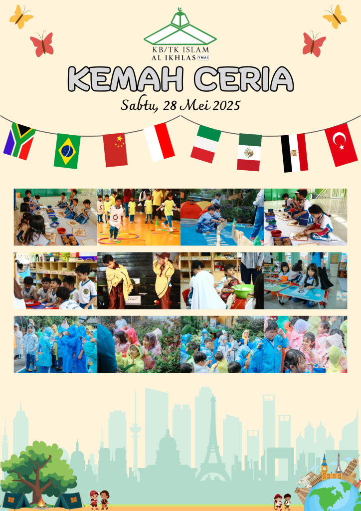 Asyik! Seru sekali! Pada hari Sabtu, 28 Mei 2025, teman-teman TK B KB/TK Islam Al Ikhlas mengikuti Kemah Ceria dengan tema “Menjelajahi Indahnya Dunia”! Wah, seperti apa ya keseruannya? Yuk, kita intip bersama!
