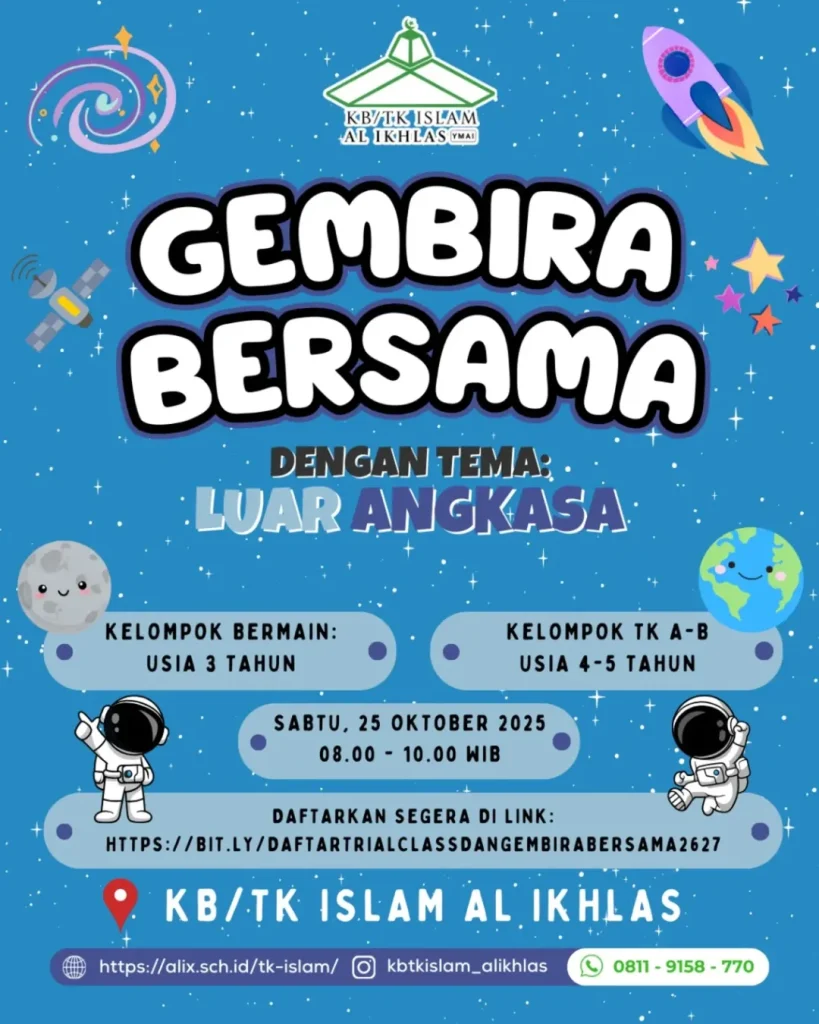 Waktu : KB/TK Islam Al Ikhlas, Jl. Cipete III No.3, Cipete Selatan, Telp. 021-7657942