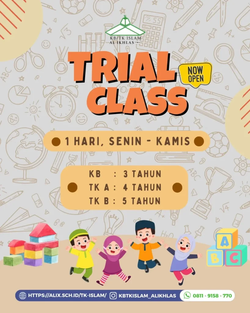 - Free Trial adalah kegiatan bagi calon siswa KB/TK untuk merasakan suasana belajar di KB/TK Islam Al Ikhlas tanpa biaya maksimal 1 hari.